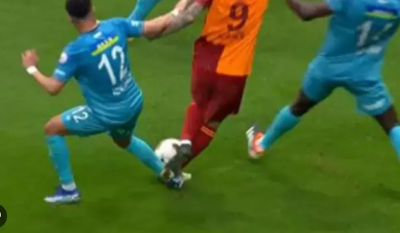 Bu top kimə daha yaxındır? Oyun qaydalarına görə futbola kim nəzarət edir? Bu top İkardiyə daha yaxındır. O, yerdən üzür və İkardi tərəfindən idarə olunur. İkardi özünü həmin topa uyğunlaşdırdı, dayaq ayağını qoydu və topa vurmaq üçün digər ayağını yellədi. Qarşısındakı müdafiəçi onun atacağını düşünərək qarşısını almağa çalışır. Arxadan gələn müdafiəçi top ondan uzaqda olduğundan və topun onun nəzarətində olması bir yana, topla oynamaq imkanı olmadığı üçün üsula əl atır. İkardinin topa doğru yellədiyi ayağı dayandırmaq üçün ayağını yellənən ayağın qarşısına qoyur və İkardinin yellədiyi ayaq ona dəyir. İkardinin yellənən ayağı da ona dəyir və İkardi iki ayağı arasında ilişərək yerə yıxılır. Şübhəsiz ki, çox açıq penaltidir.